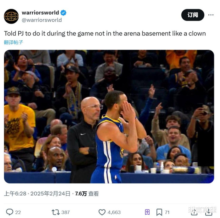 说起来这事真得怪pj自己败人品,上一场独行侠主场赢球靠的是裁判和欧神仙暴走,但是华盛顿连打都没打你说你在那装什么呢?装到底也行啊,晚安只敢背对着库里在球员通道做。再加上之前独行侠主场第一场,PJ-华盛顿也曾在场下做晚安嘲讽库里。所以说没事别惹小学生,他特记仇。